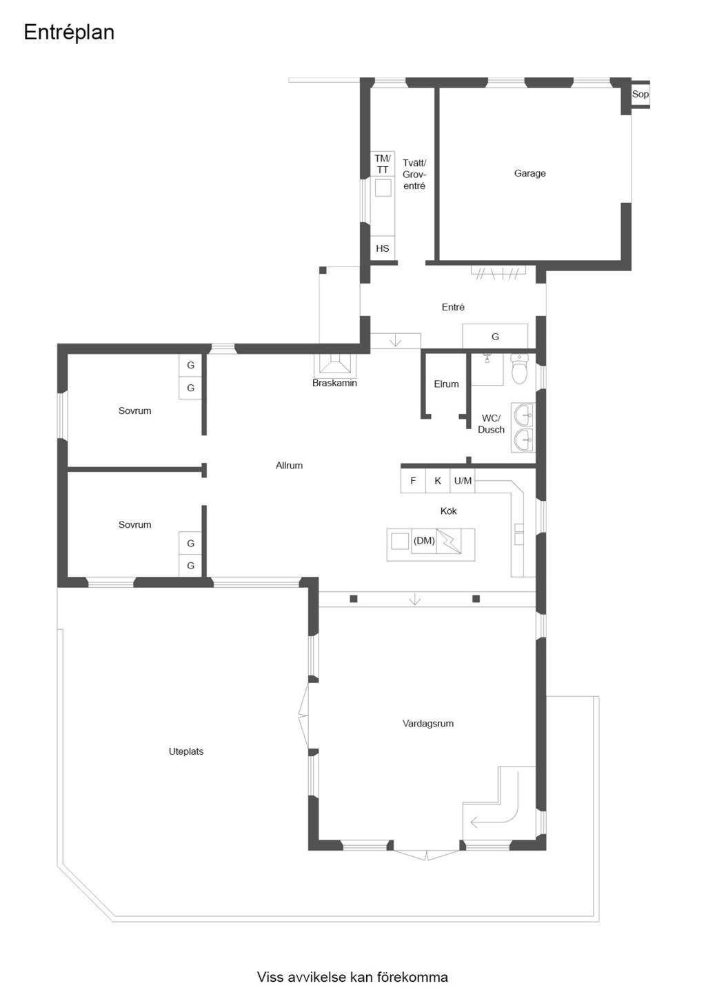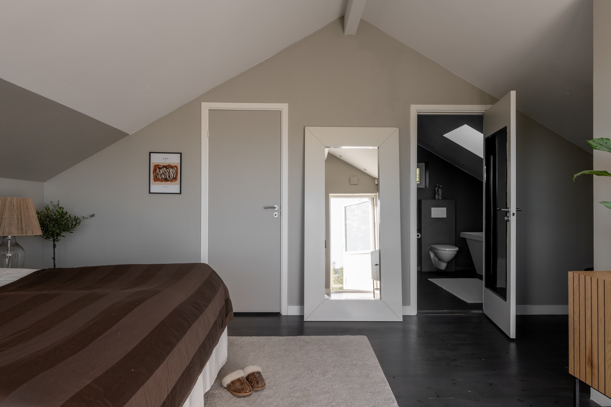 Två tilltagna sovrum på entréplan ger flexibilitet för familj, gäster eller arbete.