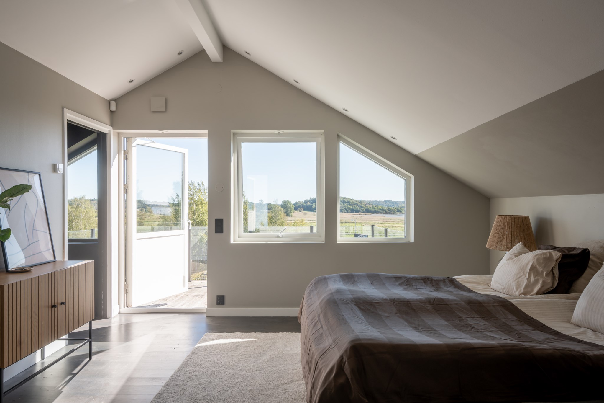 På övre plan väntar master bedroom – en privat svit med walk-in-closet, stort badrum samt egen balkong med utsikt över hav och grönska.