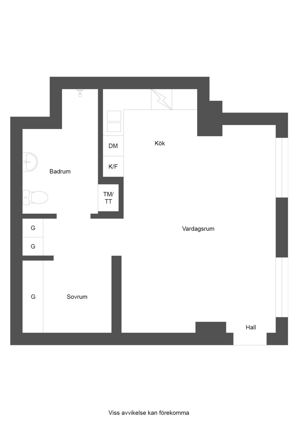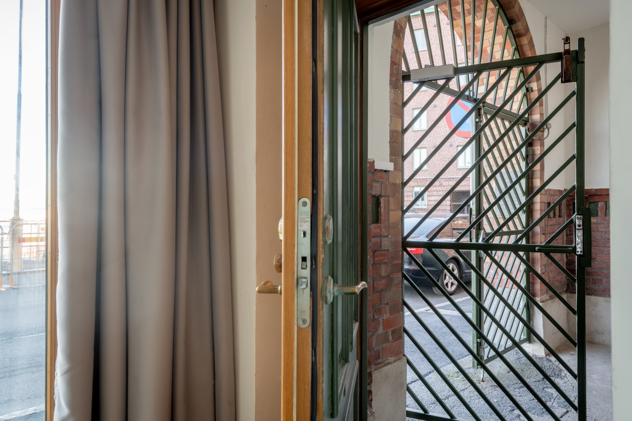 Hallen välkomnar dig med ett praktiskt grått klinkergolv, en ljus hall som leder vidare in i