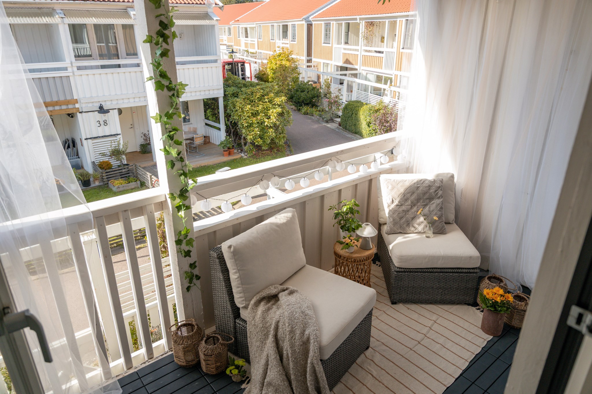Från vardagsrummet når du ut till lägenhetens balkong i västerläge – en härlig plats att njuta av solen från eftermiddag till kväll. Perfekt för en kopp kaffe, ett glas vin eller bara en stund i lugn och ro.