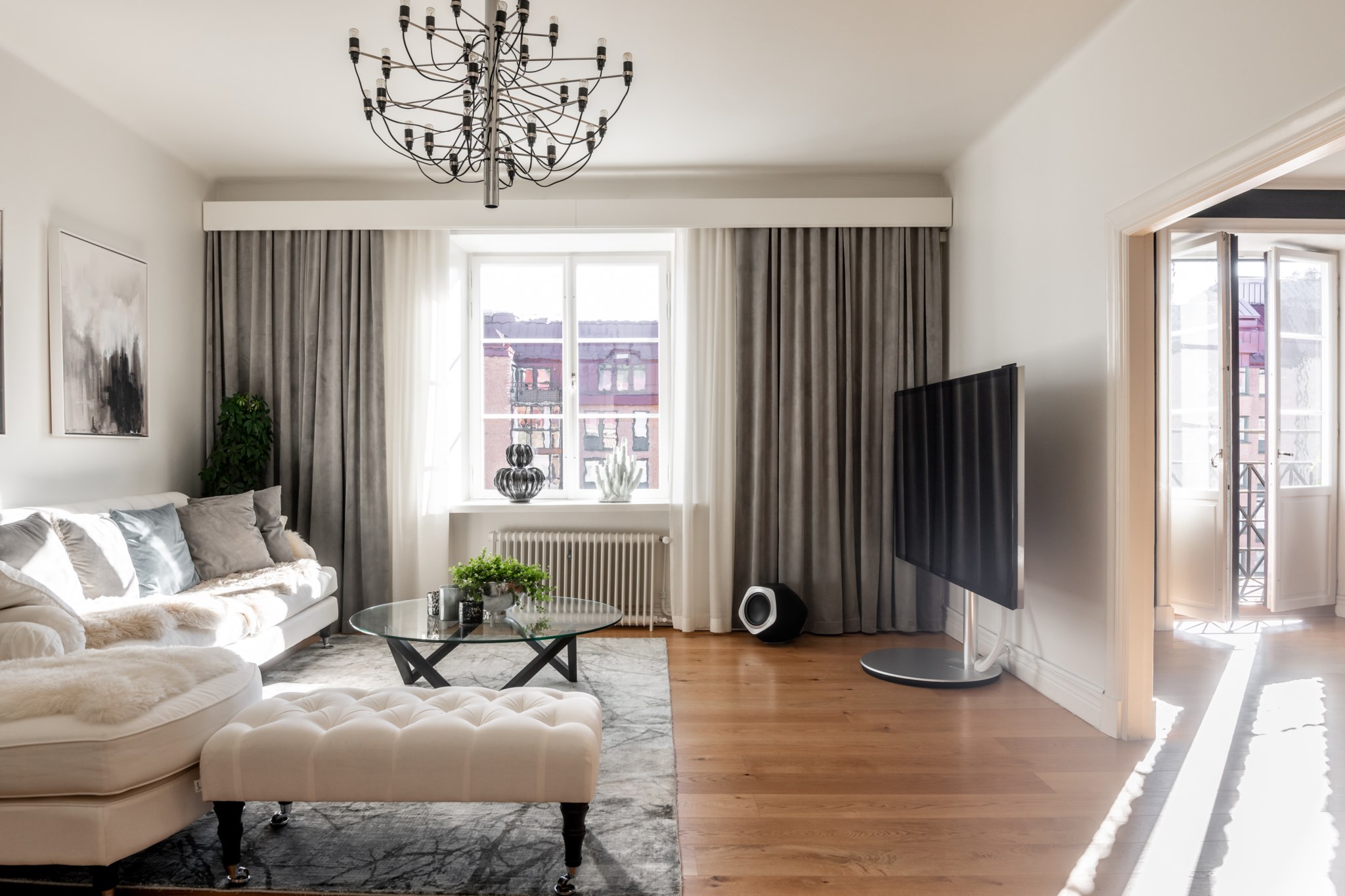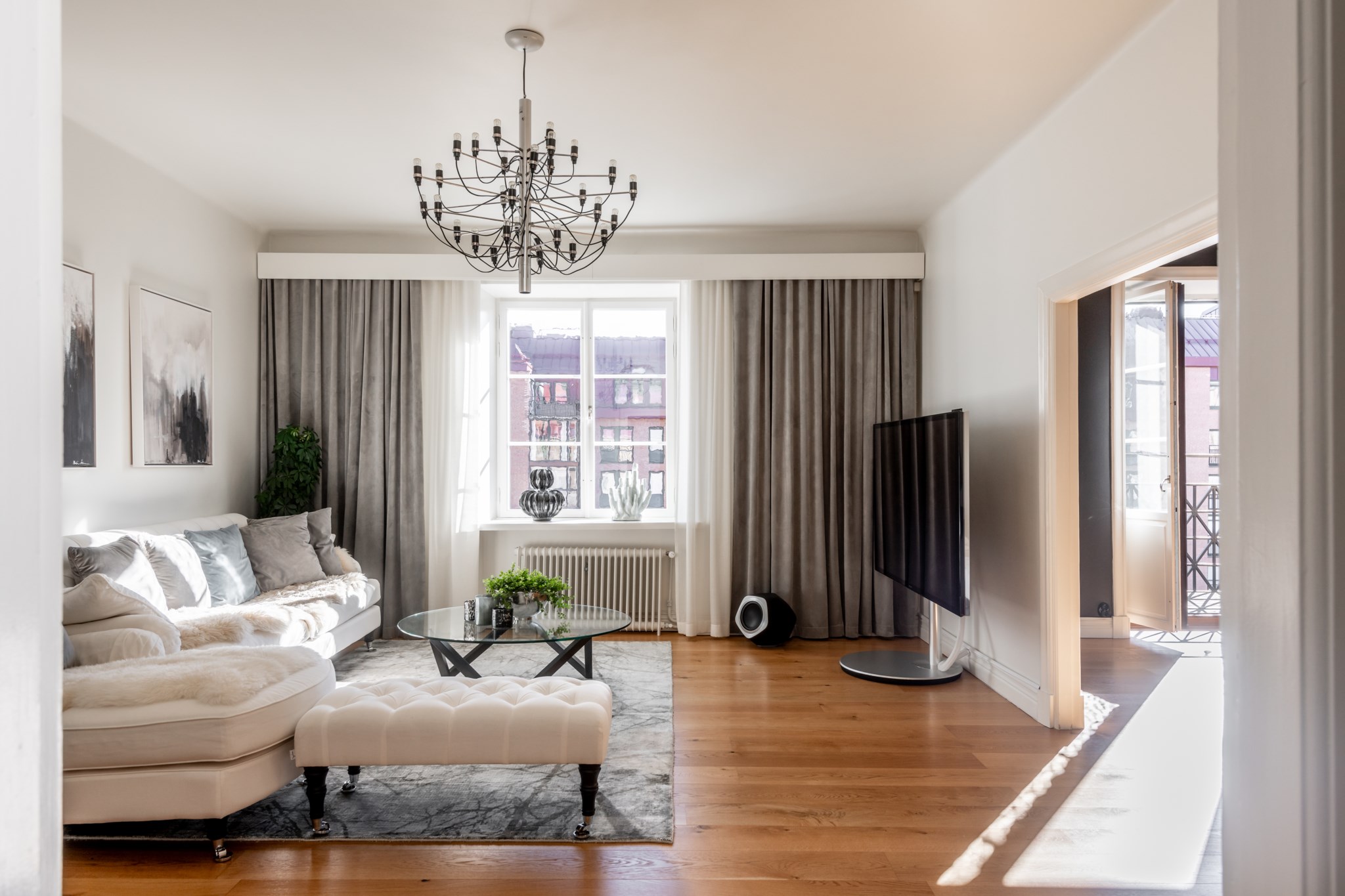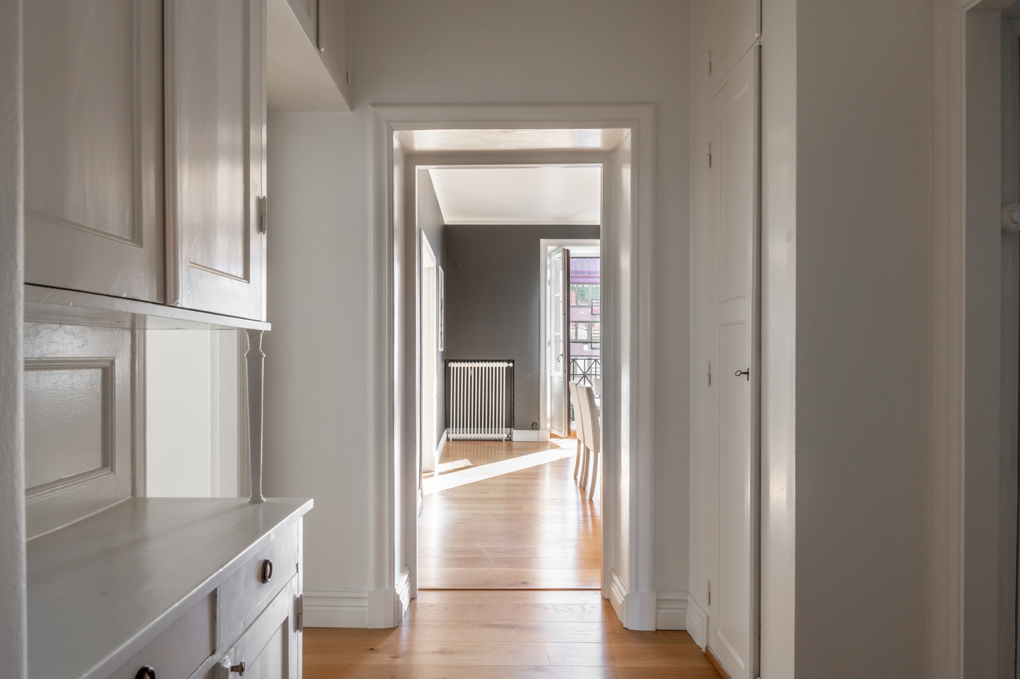 Elegant 20-talsvåning på Linnégatan med tre sovrum, två balkonger och stilfull renovering