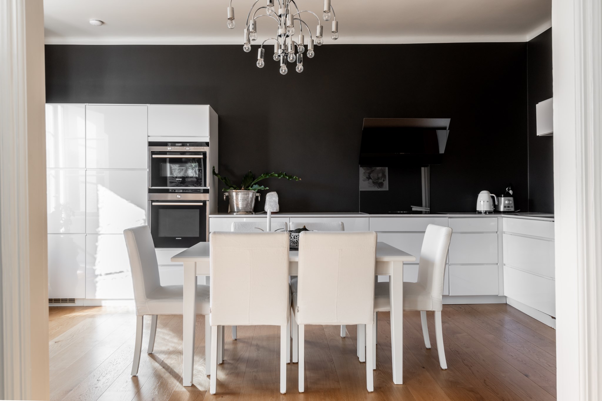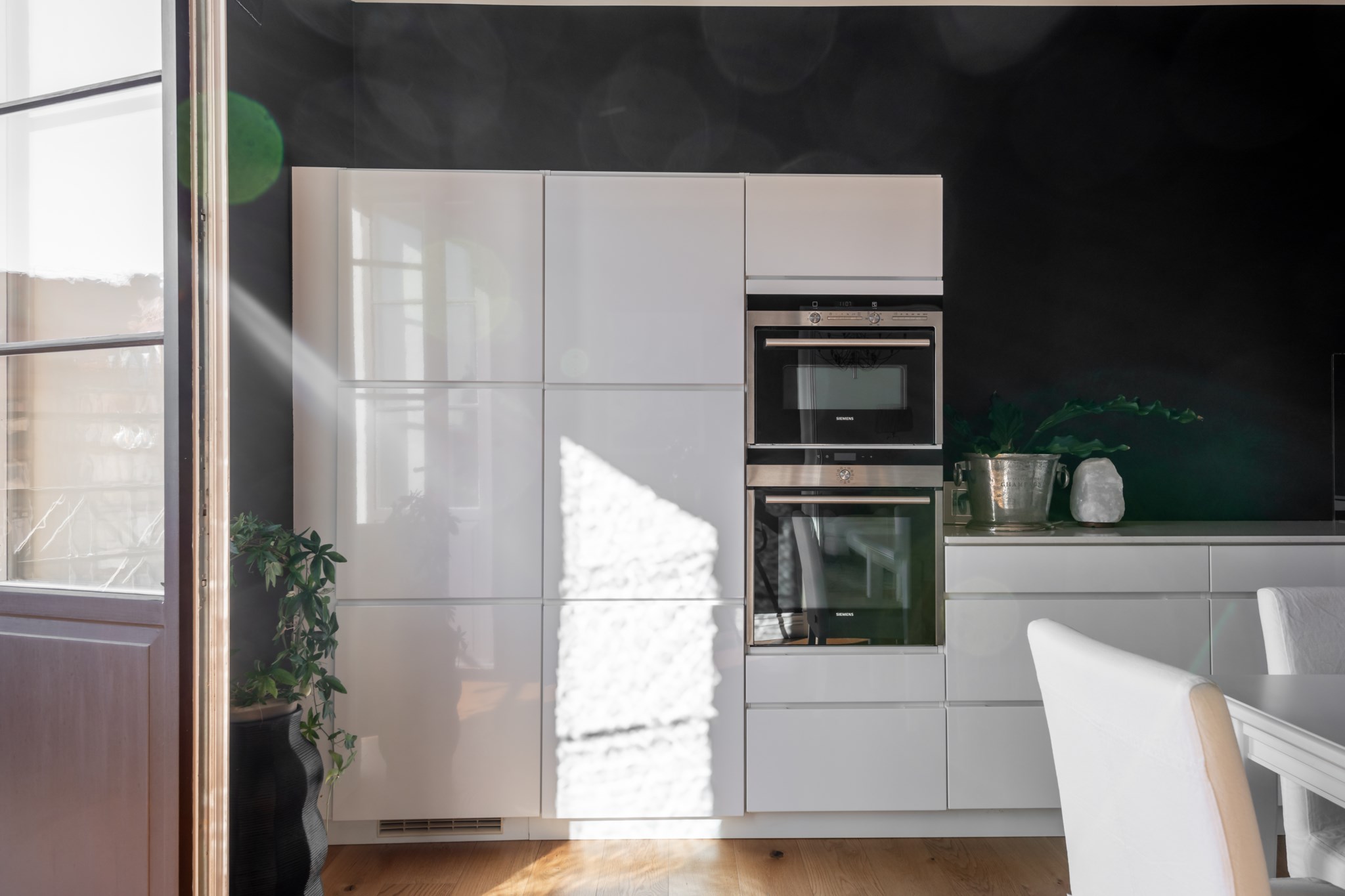 Efter en välplanerad omdisponering av planlösningen har ett rymligt och inbjudande sällskapskök skapats. Köket, från Kvik (2013/14), är fullt utrustat med vitvaror från Siemens (diskmaskin från Bosch) och inkluderar: