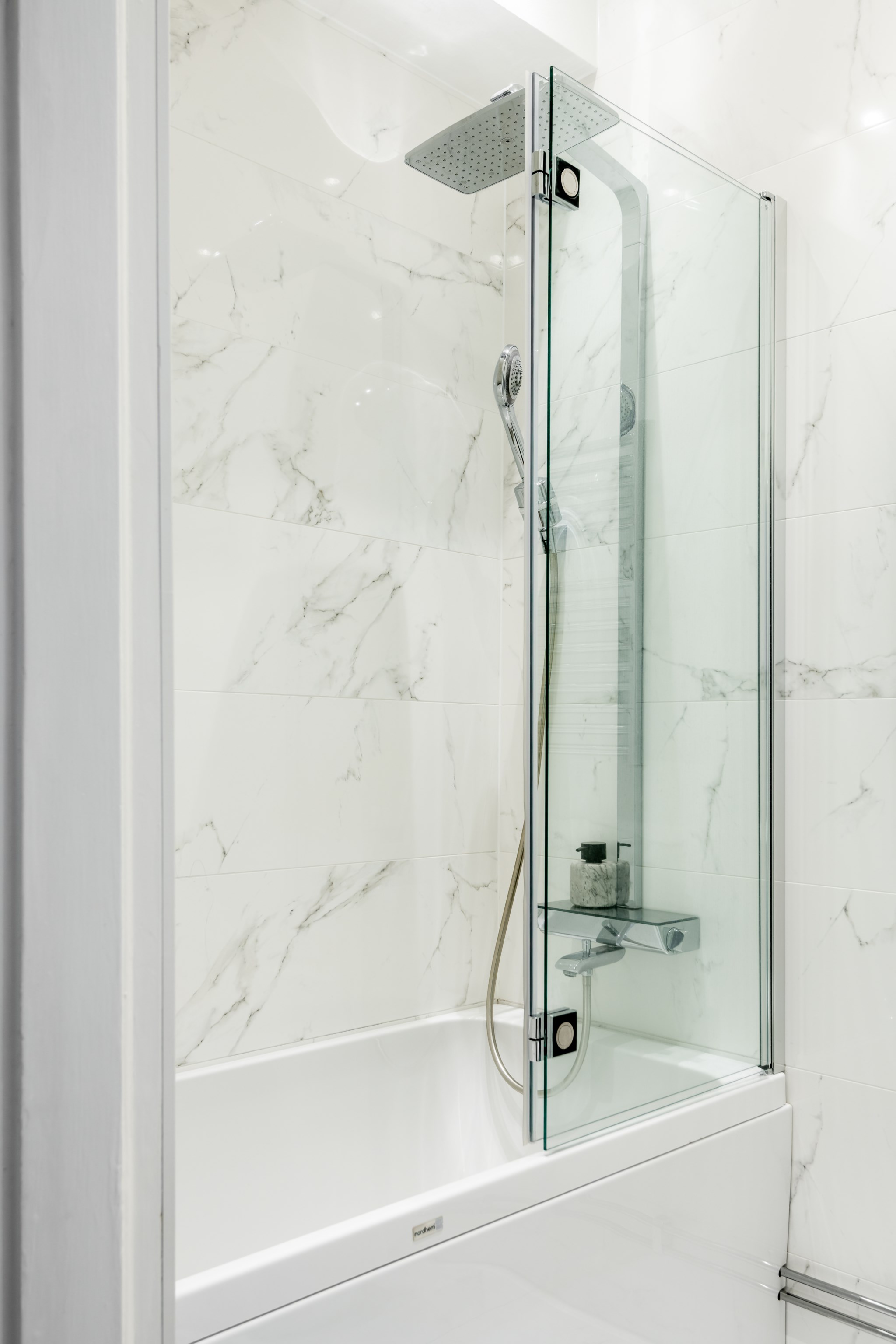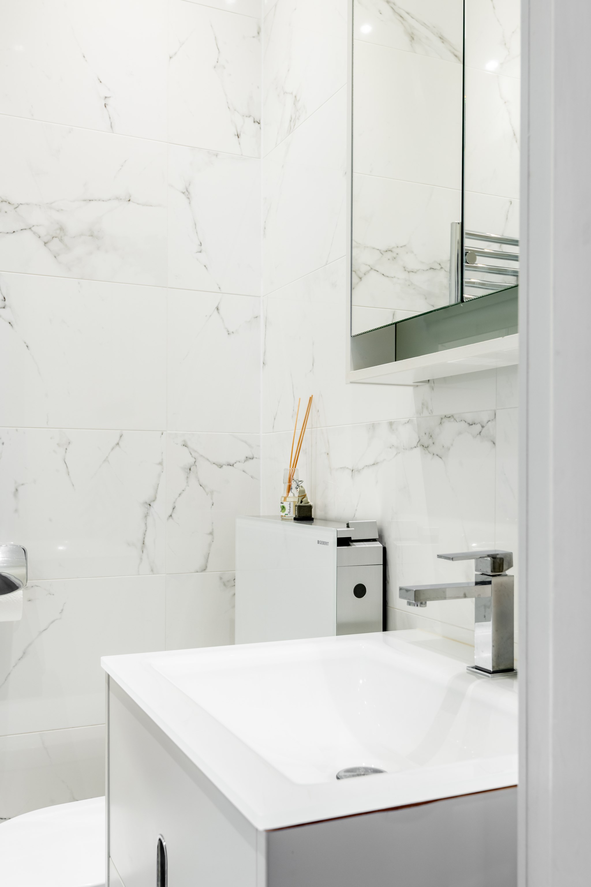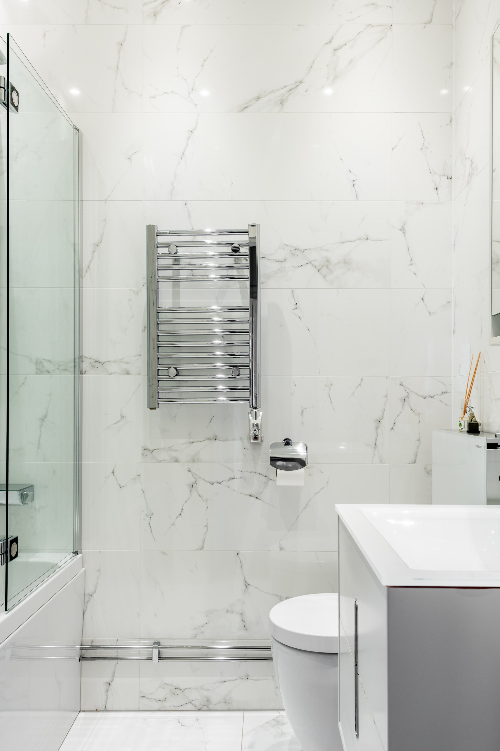 Nyrenoverat med helkaklade väggar och golv. Utrustat med: