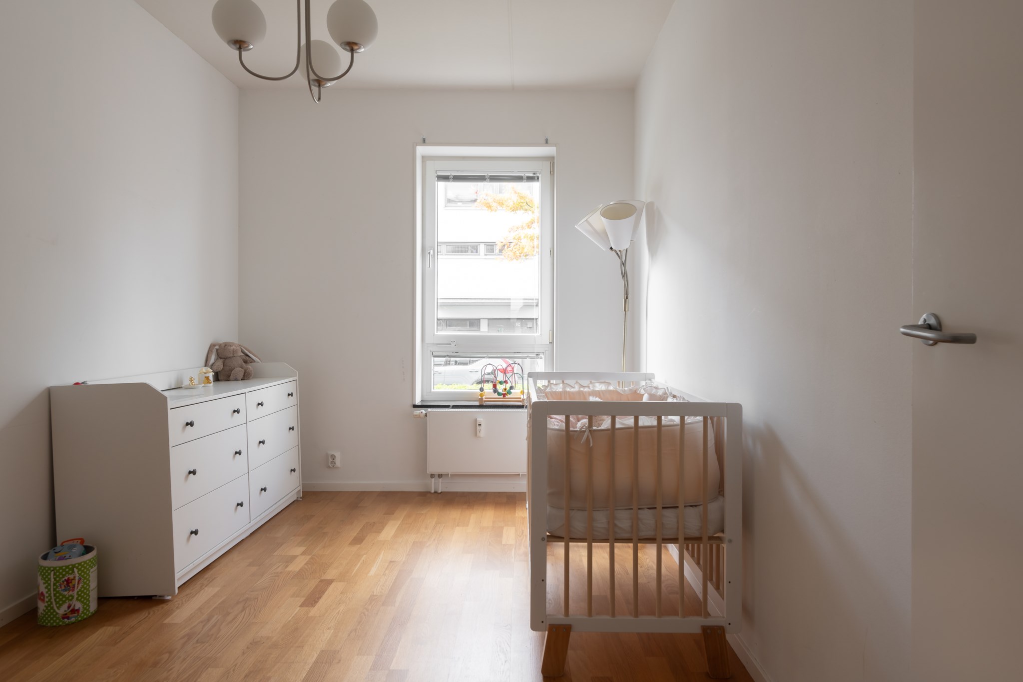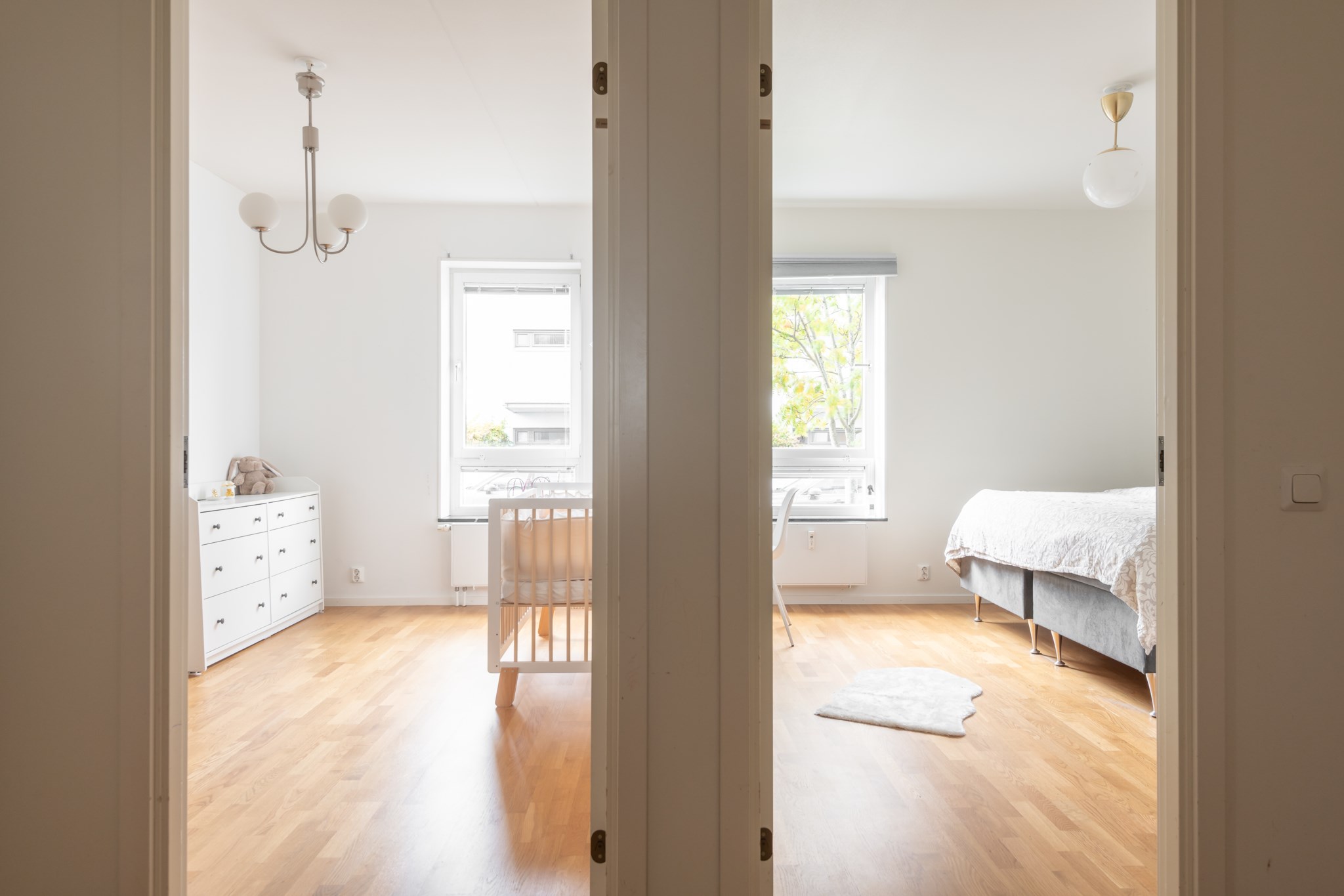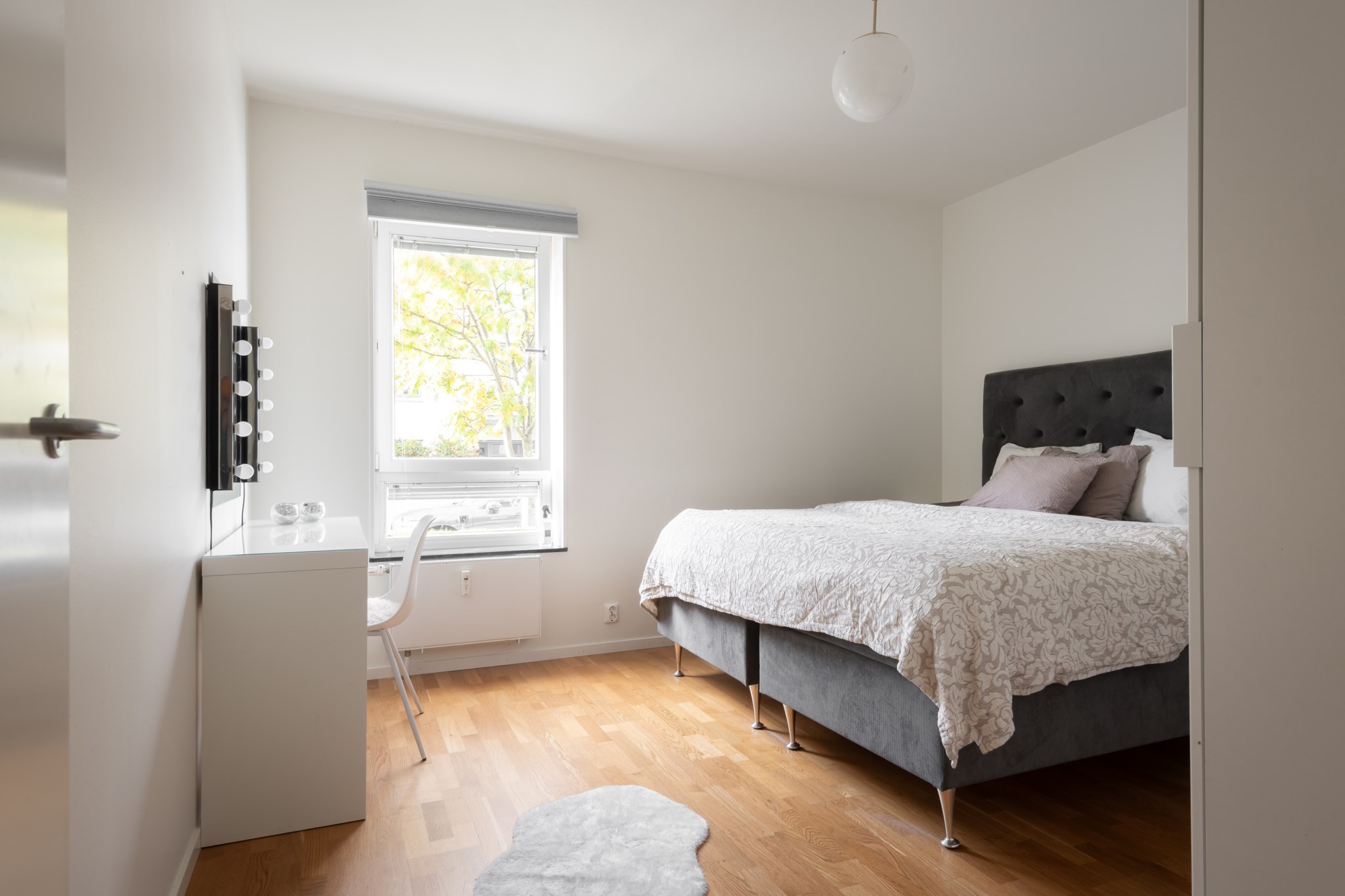 Det andra sovrummet är flexibelt och lätt att anpassa efter behov – perfekt som barnrum, gästrum eller hemmakontor. Rummet är ljust, lättmöblerat och har en lugn karaktär som gör det lika trivsamt att arbeta i som att koppla av i.