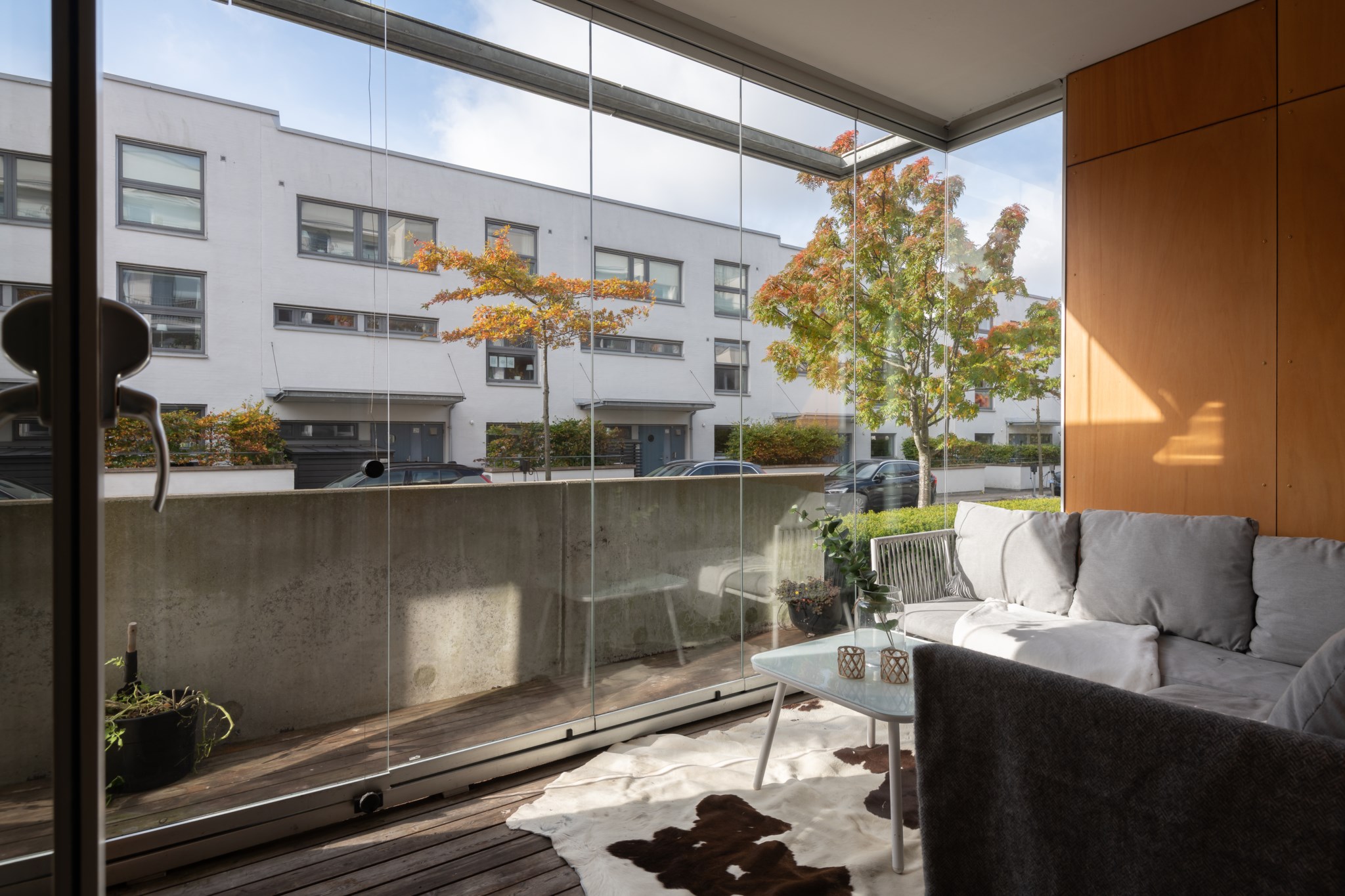 Denna välplanerade trea om 97,5 kvm bjuder på ett eftertraktat västerläge med härligt ljusflöde genom stora fönsterpartier och en solig inglasad uteplats som förlänger säsongen långt in på hösten.