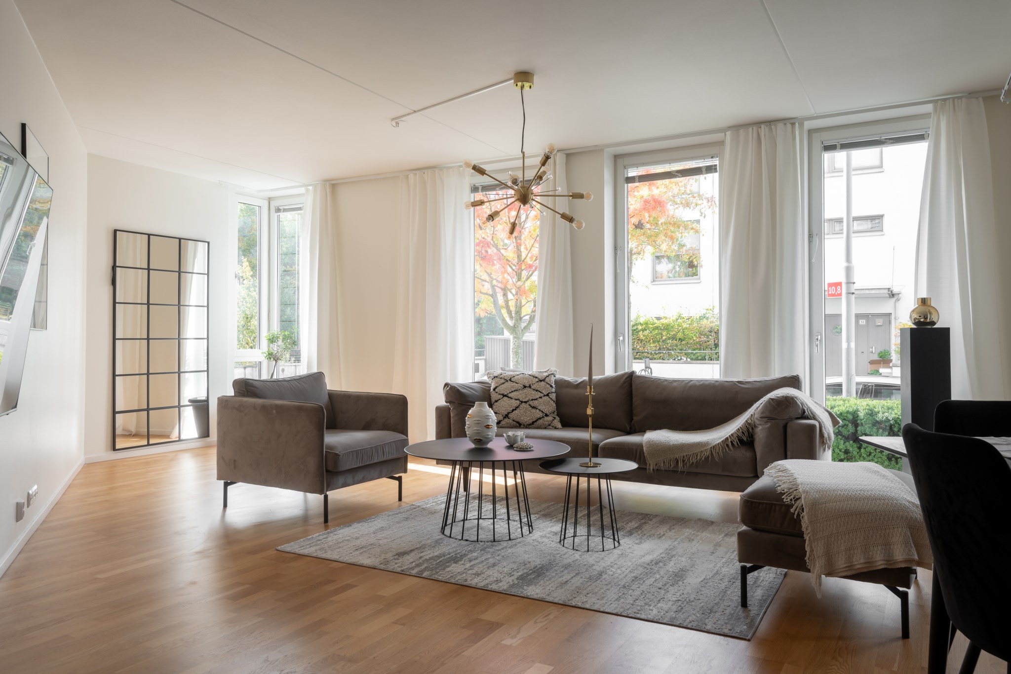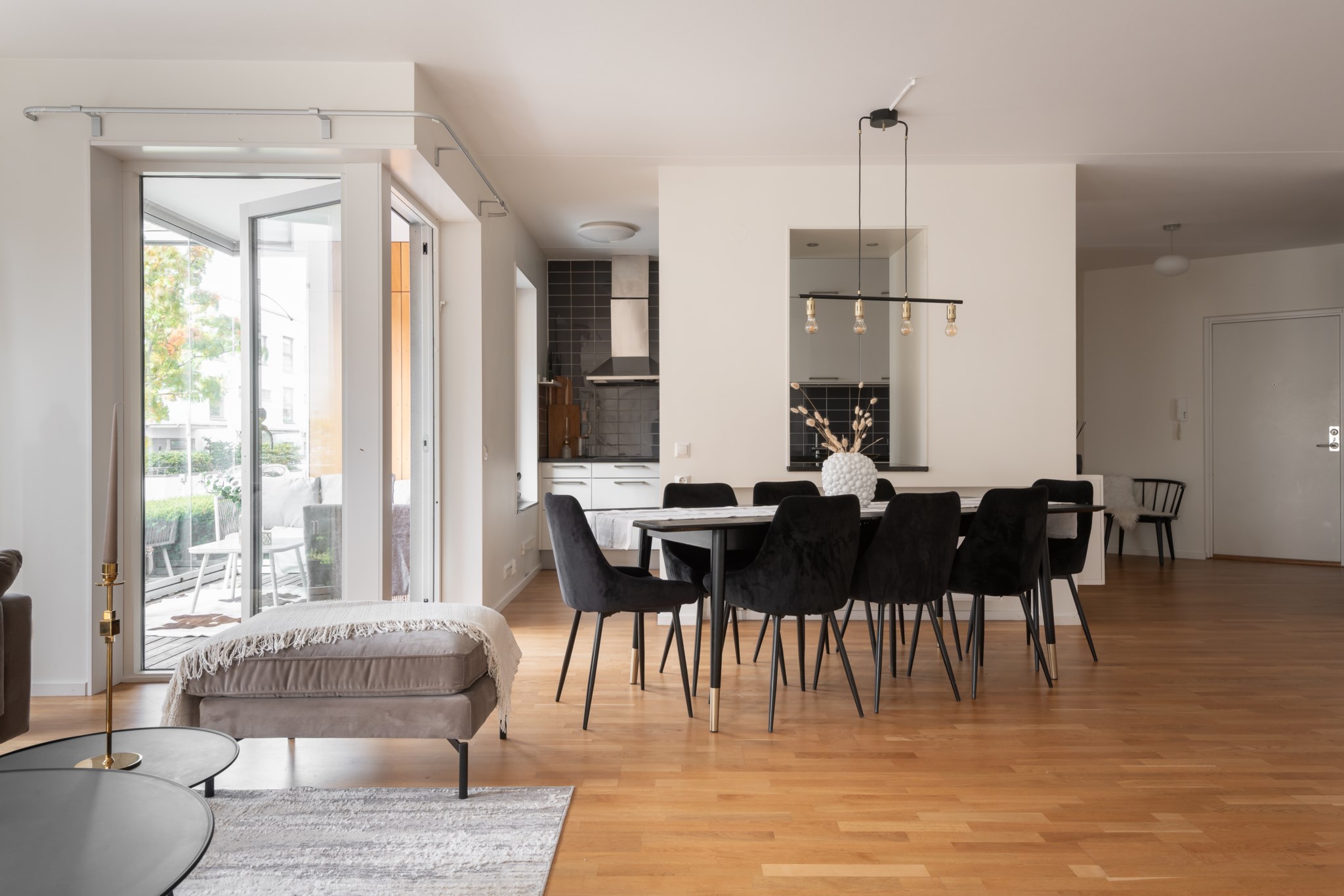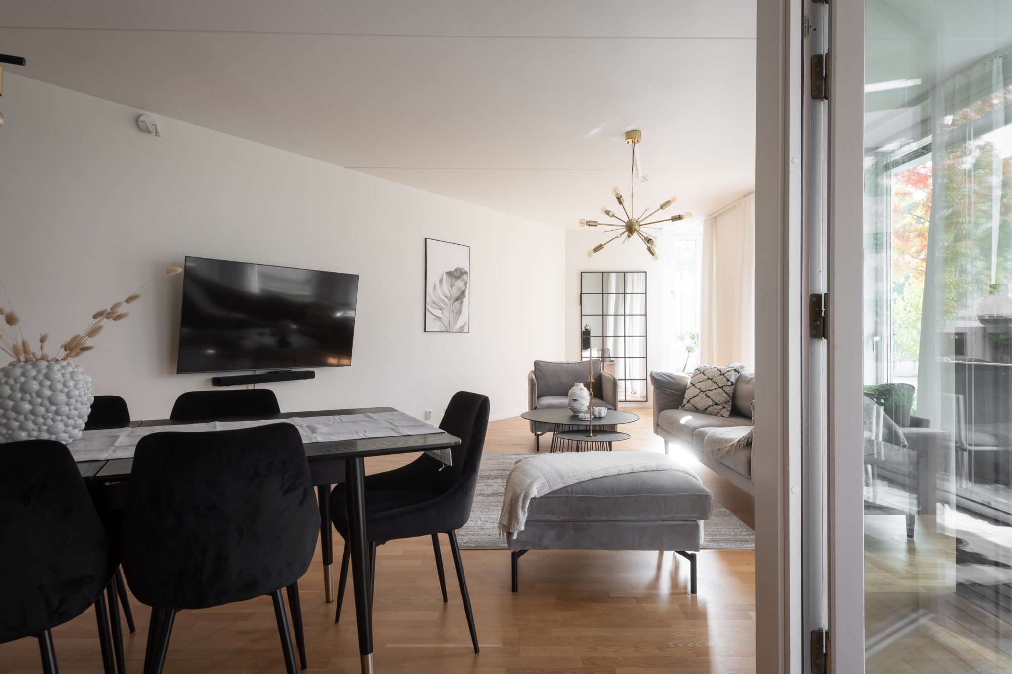En ljus och stilsäker trea med genomgående västerläge, öppna ytor och en underbar inglasad uteplats som bjuder in till liv och avkoppling. Här möts design, komfort och harmoni i en perfekt helhet.