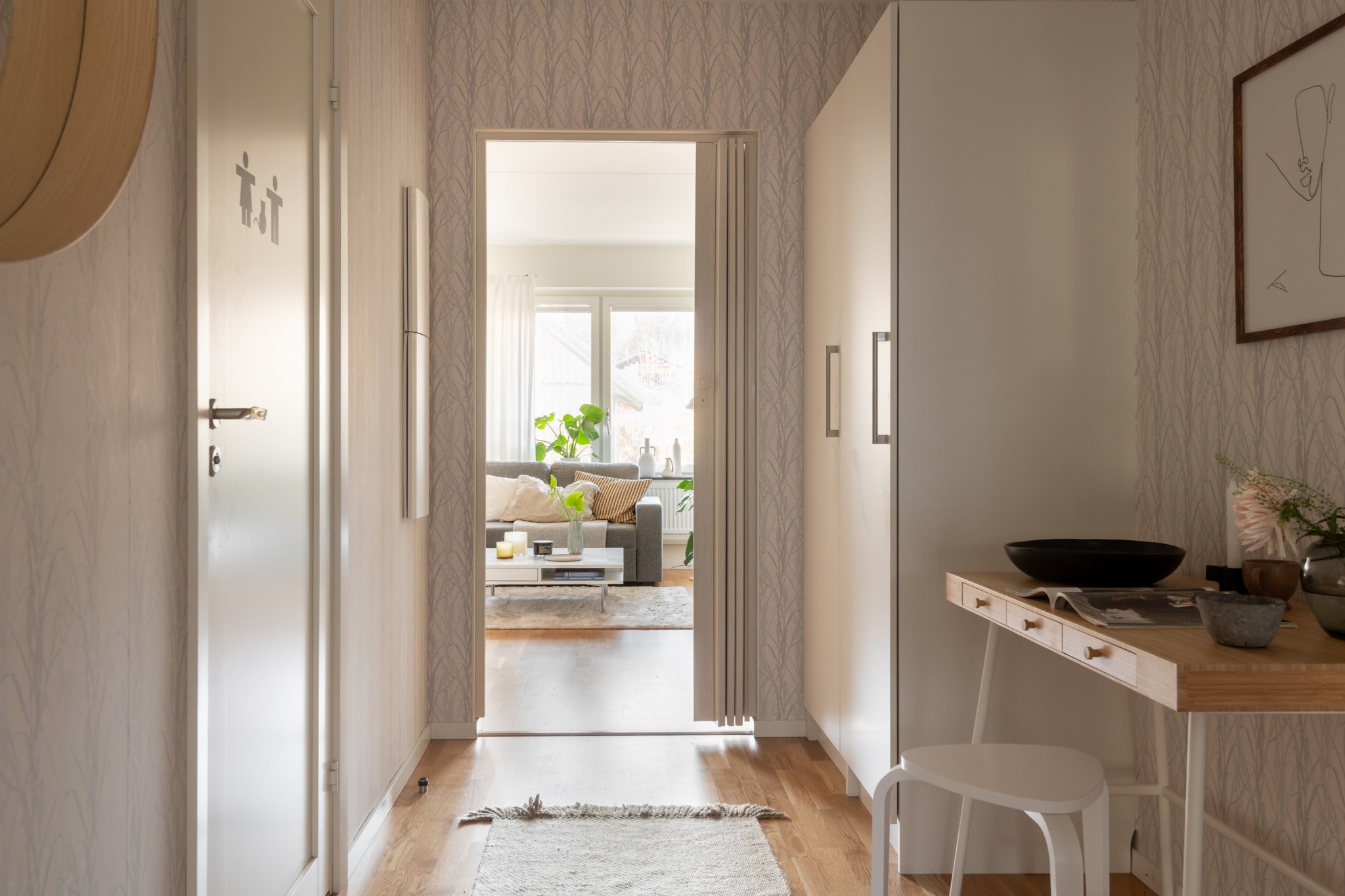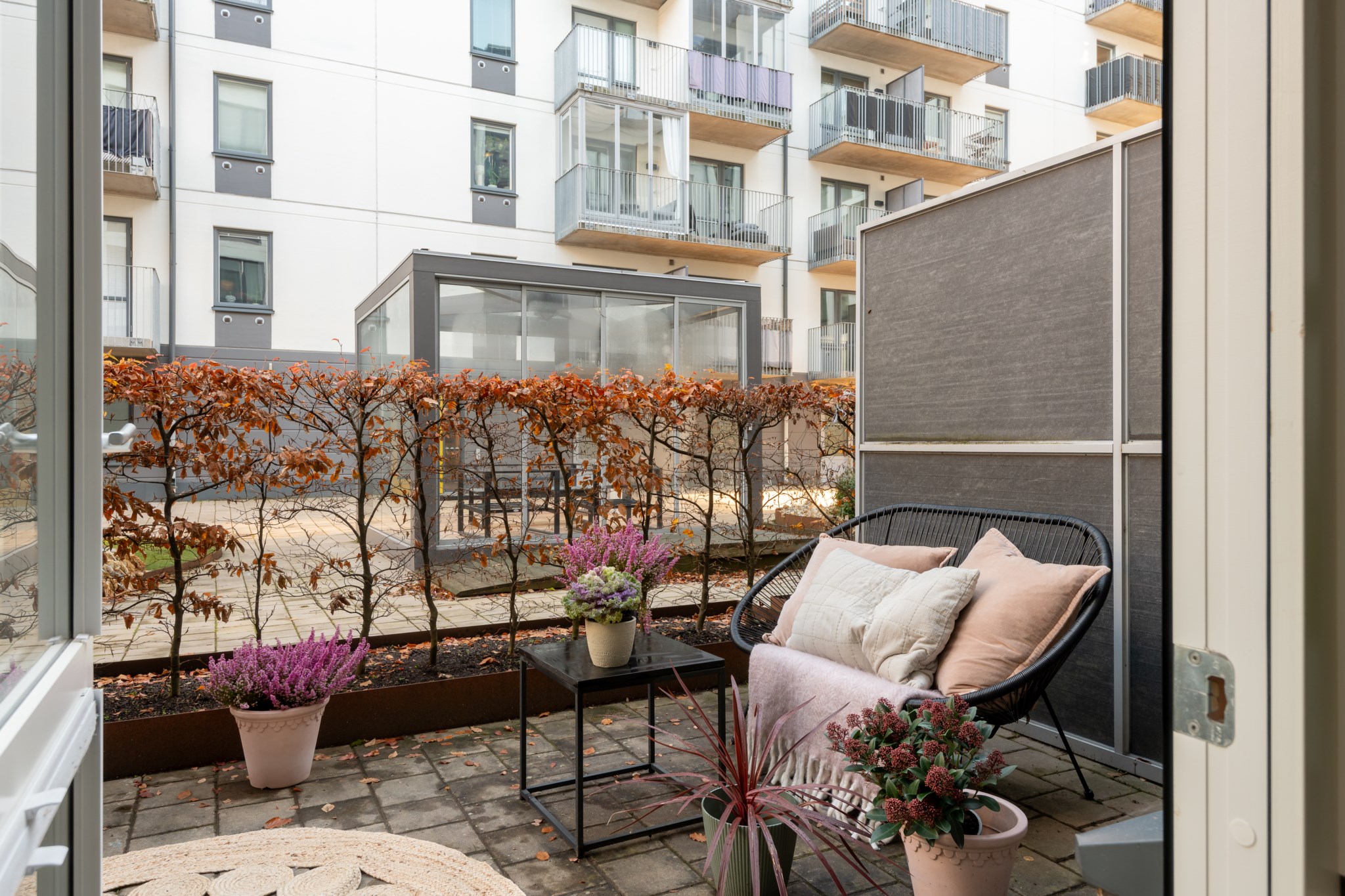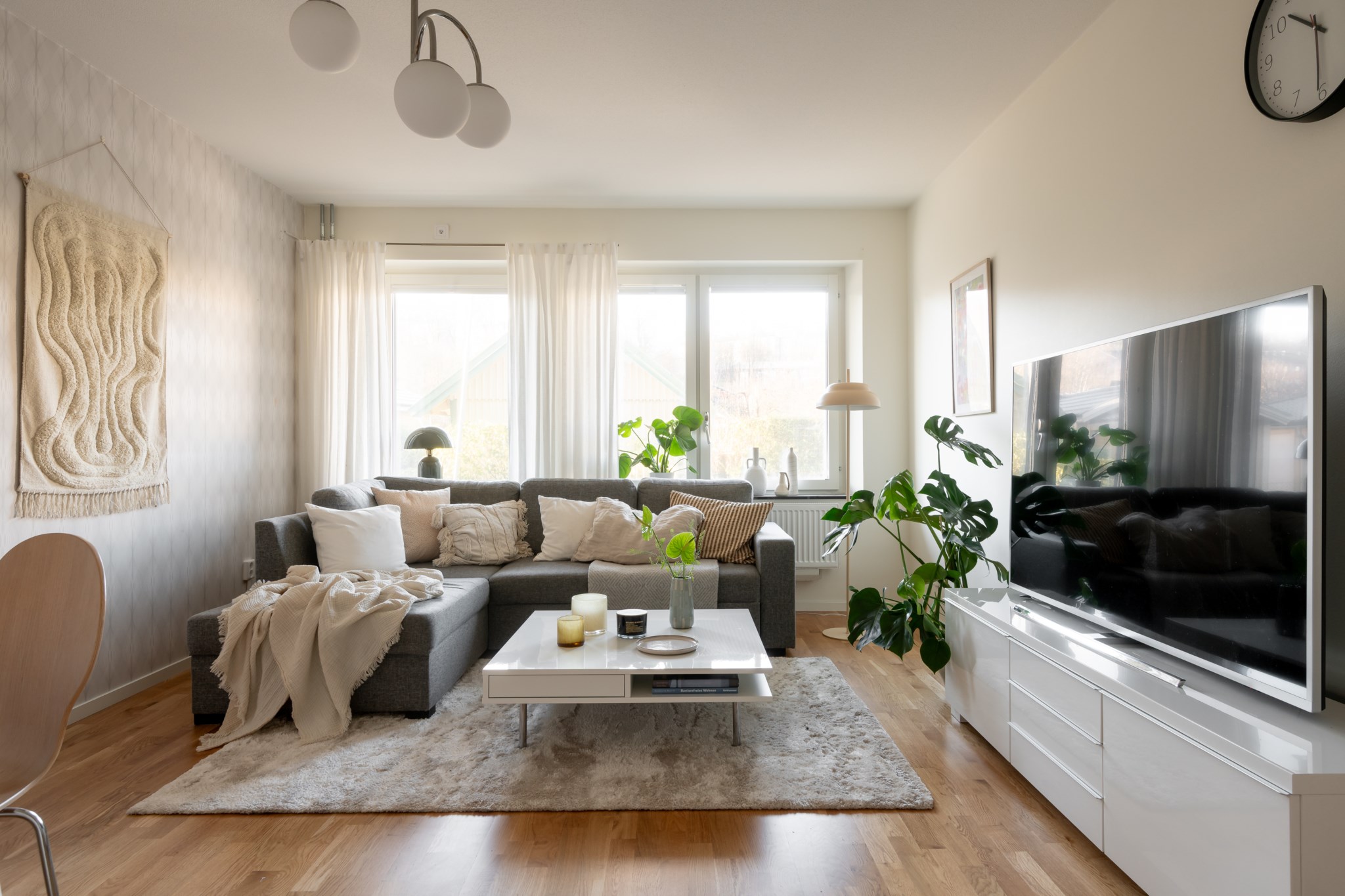 Välkommen till ett hem där funktion, lugn och vardagskomfort möts i en harmonisk helhet. Här bor du med en egen uteplats – en naturlig förlängning av hemmet och en plats där livet får ta lite mer plats. Perfekt för stilla morgnar, långa luncher eller sena sommarkvällar i goda vänners sällskap.